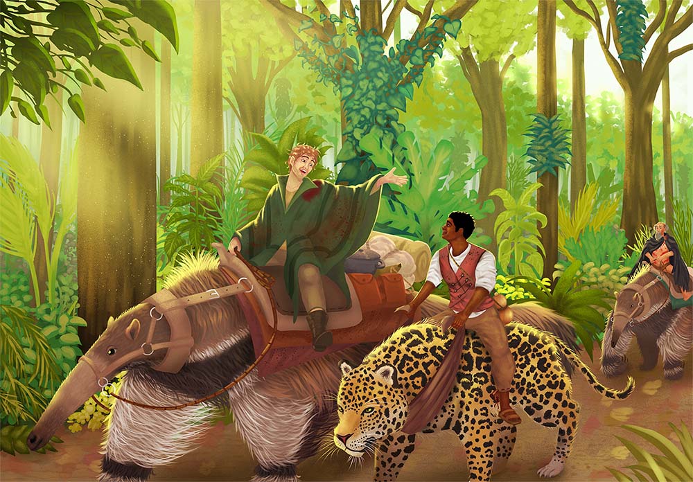 Galeria Veja as ilustrações internas coloridas do livro “O Mago Revolucionário”. Arte de Guilherme Luzardo Carvalho. Mapa de Aracum Lâmina 1: Danga-Ubi e Canael Lâmina 2: Jornada pela floresta Lâmina 3: A serpente de fogo Lâmina 4: Duelo de artistas Lâmina 5: O voo de Canael Lâmina 6: Ritual no lago Lâmina 7: A disputa pelo porto